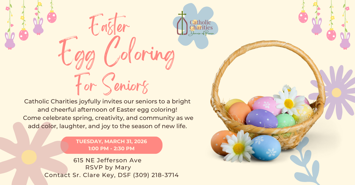 Join us for Egg Coloring for Seniors! Please RSVP by calling Sr. Clare Key (309)218-3714